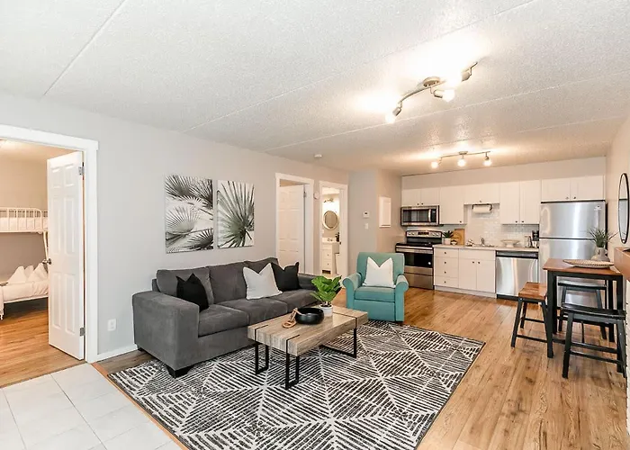 Collingwood şehrinde Collingwood Müzesi'dan 25 dakikalık yürüme mesafesinde bulunan South Wind - Modern Condo In Collingwood - Sleep 5, donanımlı mini mutfak ile konaklamayı sunar.